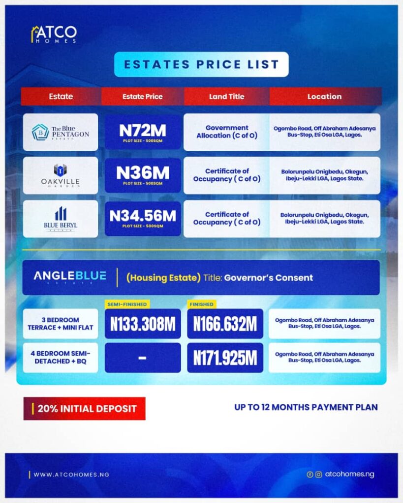 ATCO Homes – 25B UBA Road, Bera Estate, Off Chevron Drive, Lekki, Lagos.